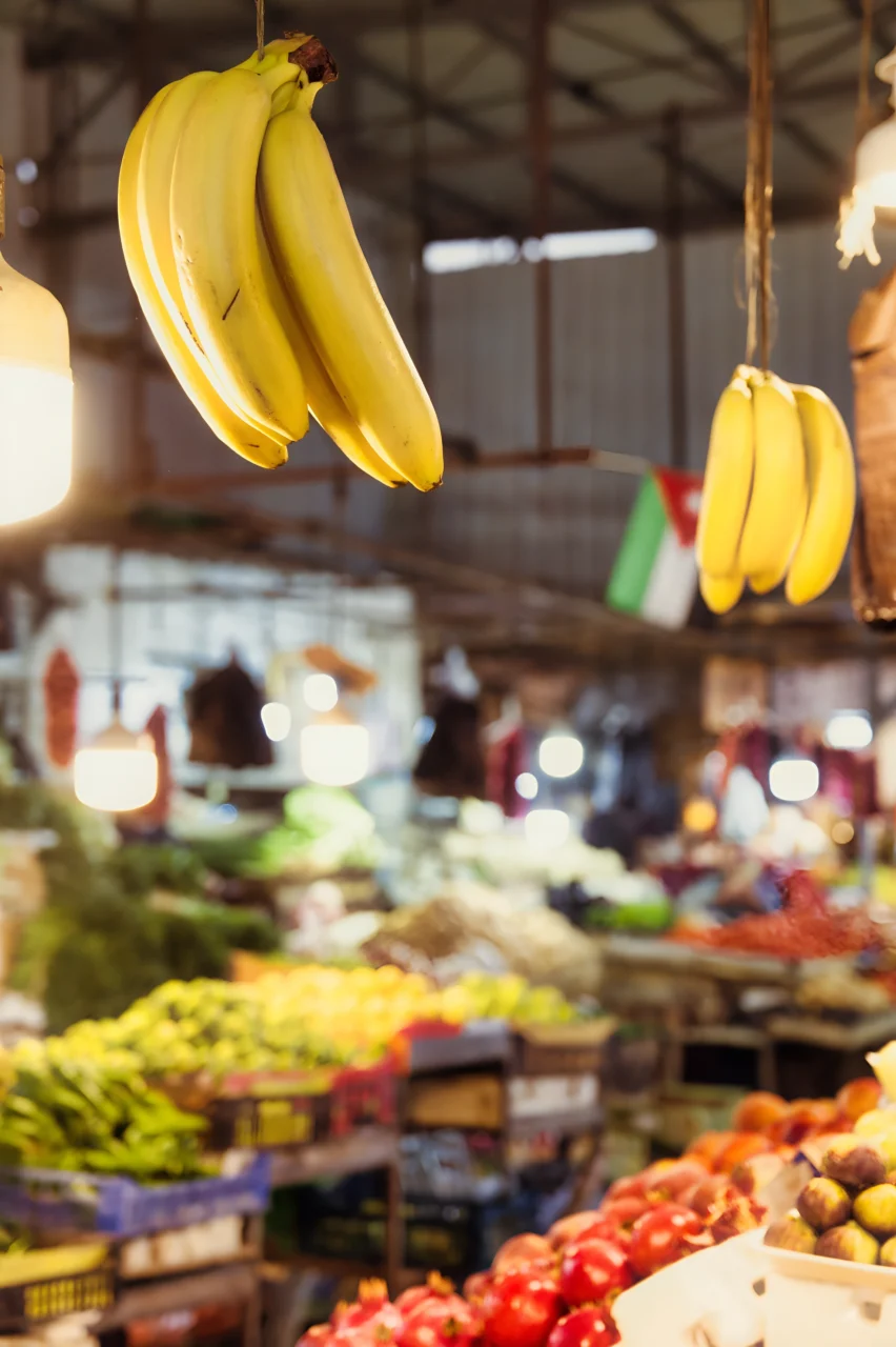 Amman la blanche s’étend au-dessus de ses souks vivants. Ses collines gardent les traces de toutes les civilisations qui l’ont traversée. Mais c’est ici, dans ces marchés où le safran côtoie les pois chiches et où les bananes dorées pendent dans la lumière du matin, que l’histoire continue de s’écrire, grain après grain, geste après geste.